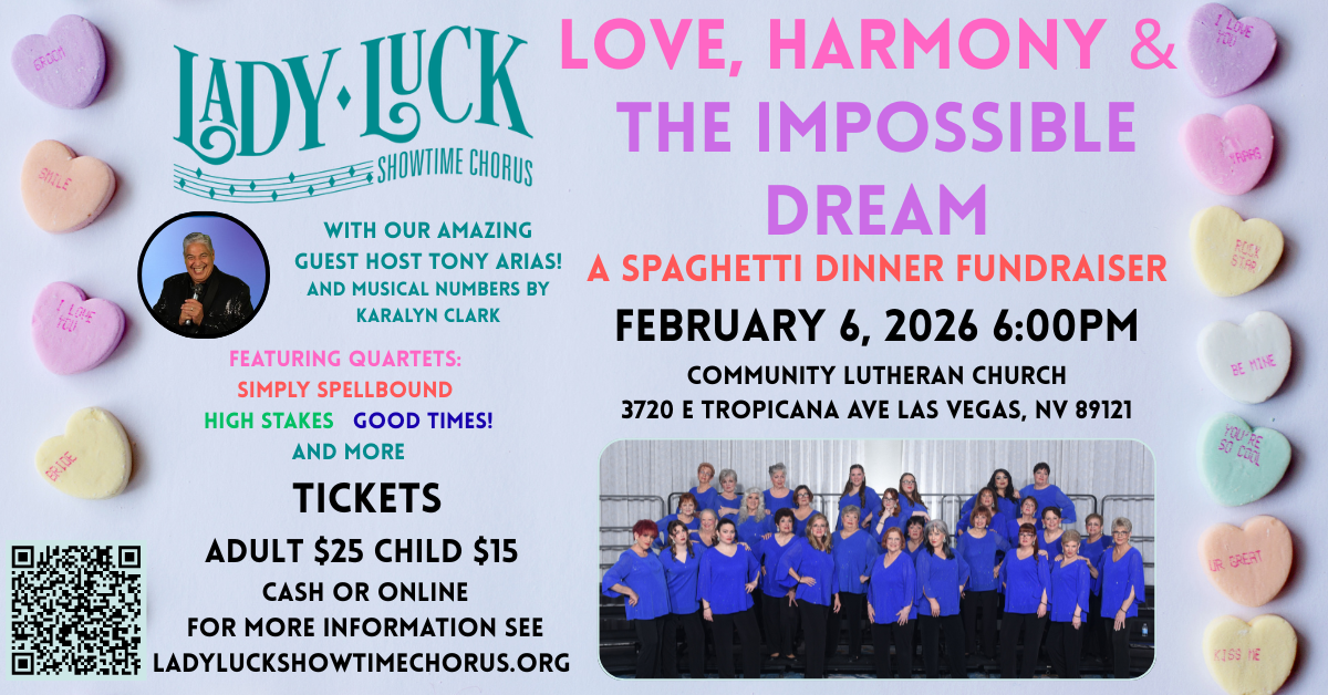 Get ready for an evening filled with music, laughter, and a whole lot of love! Lady Luck Showtime Chorus invites you to kick off the Valentine’s season with a warm, heartfelt Romantic Show—complete with gorgeous harmonies, charming quartets, and a sprinkle of musical magic.