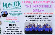Get ready for an evening filled with music, laughter, and a whole lot of love! Lady Luck Showtime Chorus invites you to kick off the Valentine’s season with a warm, heartfelt Romantic Show—complete with gorgeous harmonies, charming quartets, and a sprinkle of musical magic.