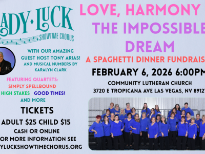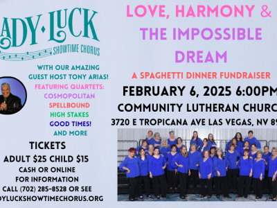 Lady Luck Showtime Chorus is affiliated with Sweet Adelines International, a 501(c)3 non-profit educational organization based in Tulsa, Oklahoma. Gifts are tax deductible to the extent allowed by law. Please check with your tax advisor concerning the tax deductability of your gift.